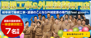 こんにちは! 地域密着の岐阜市・各務原市・美濃加茂市の屋根工事・外壁塗装・防水工事専門店フィールグッ