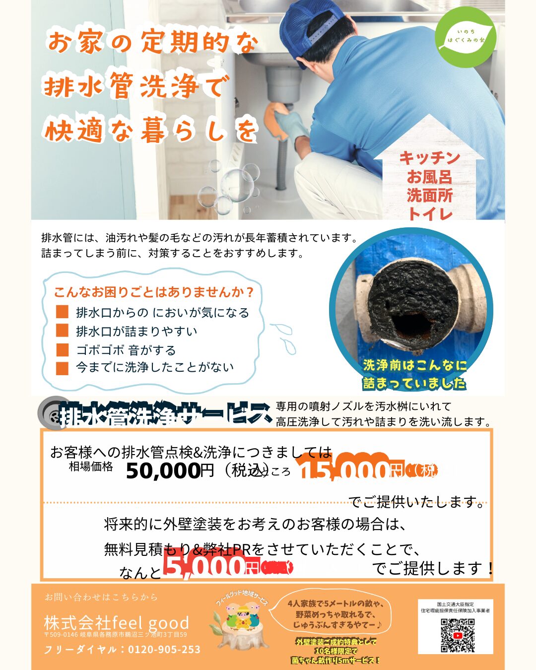 フィールグッドでは、各務原市で排水管洗浄サービスも行っています。