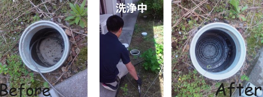 ※ 屋外の排水桝洗浄は、浄化槽から遠い順番に行い、排水の流れに沿って効率よく洗浄していきます。