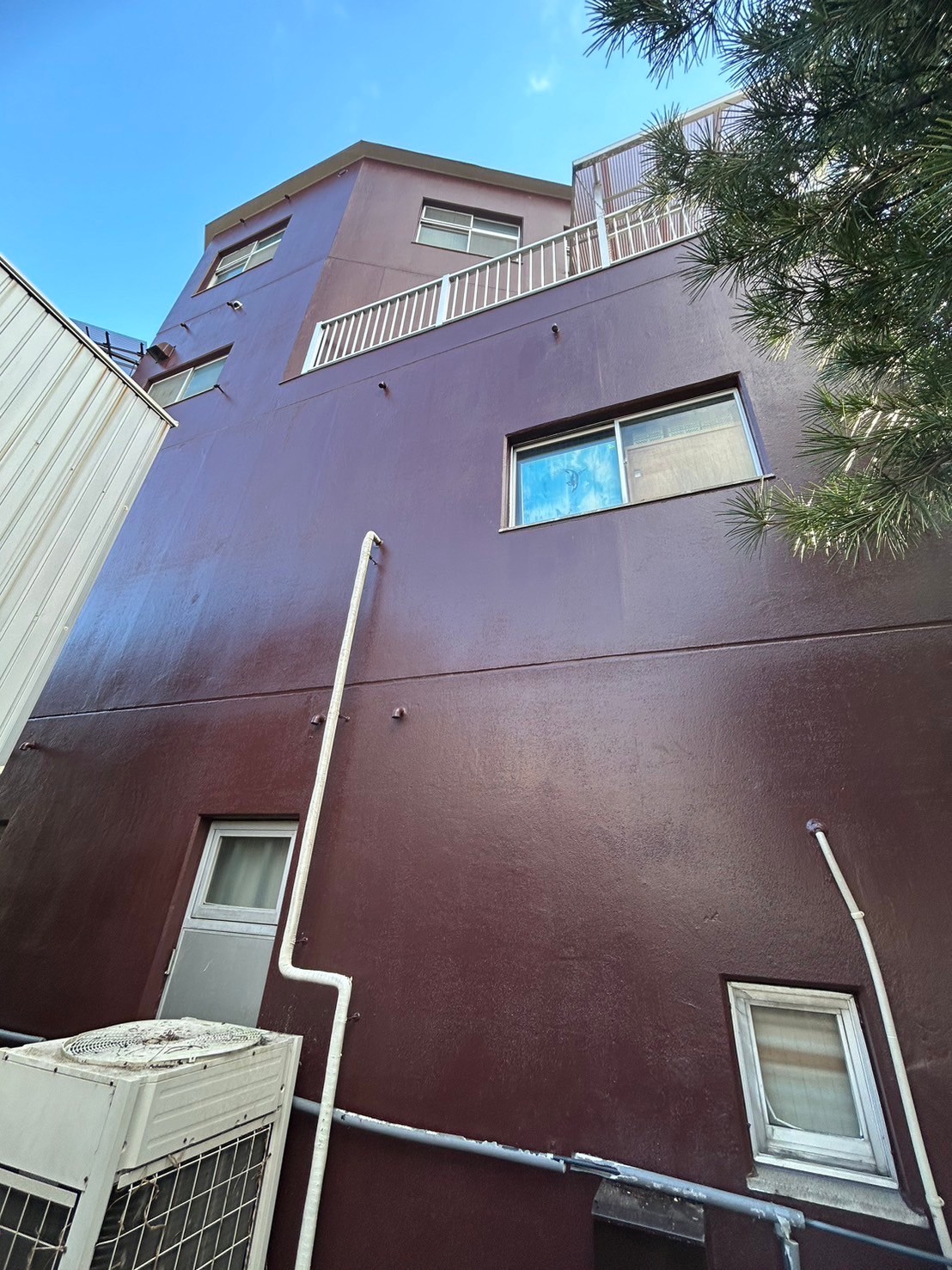 ▶最近では、築50年以上経過した鉄筋コンクリート4階建てビルの外壁塗装と屋上防水工事を行いました。