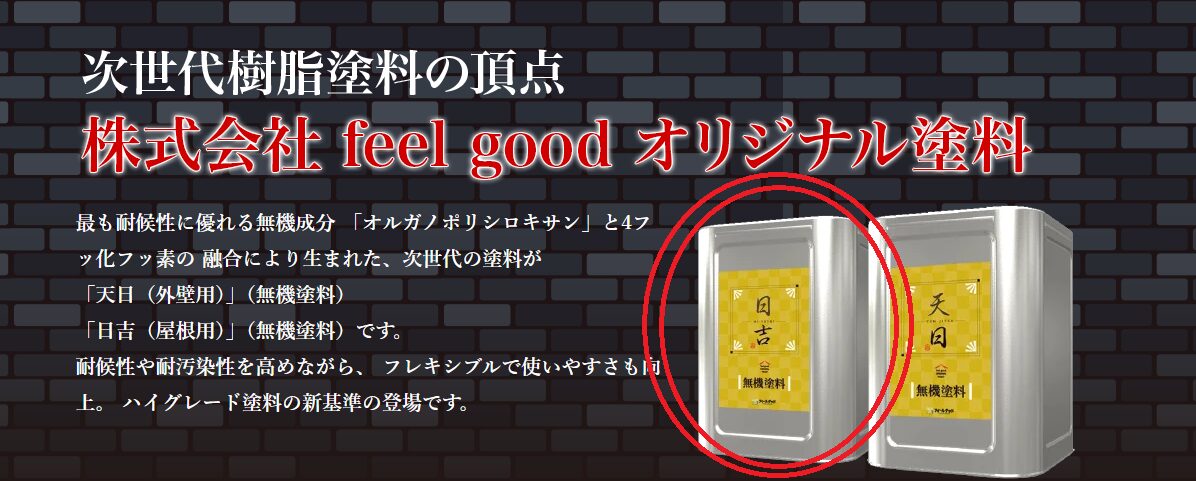 フィールグッドのオリジナル塗料「日吉」は、無機成分と4フッ化フッ素のハイブリッド構造を持つ次世代型の塗料です。