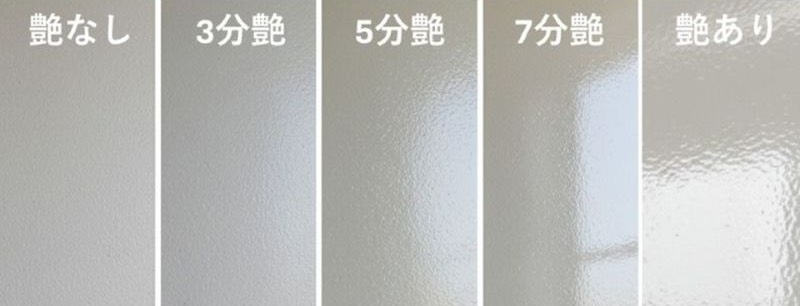 「艶なし → 3分艶 → 5分艶 → 7分艶 → 艶あり」