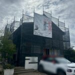いよいよ始まる作業。足場を組み立て、ネット養生します。足場を立てる前にご近所様へのご挨拶を弊社の方でせていただきます。