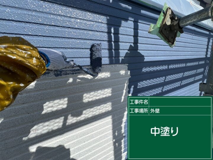 中塗りではお客様のご要望の色を塗っていきます。下塗りがしっかりとかわいてから、上塗り1回目を塗装します。この段階で凹凸等のない平らでなめらかな下地をつくっておくことで、上塗りがキレイに塗れるため、より美しく仕上げることができます。
