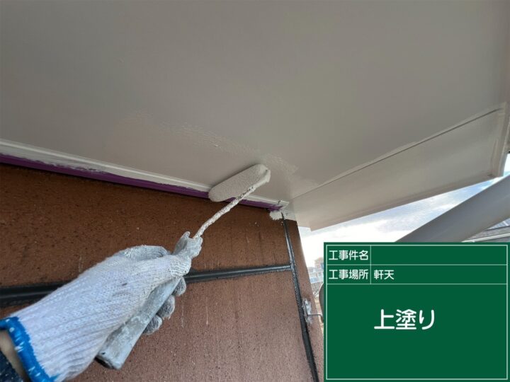 つい盲点になってしまうのが軒天の塗装です。軒天は、環境の影響によって塗膜が剥がれやすい部位です。軒天の劣化を放っておくと、軒天材一式交換になってしまう事もあります。