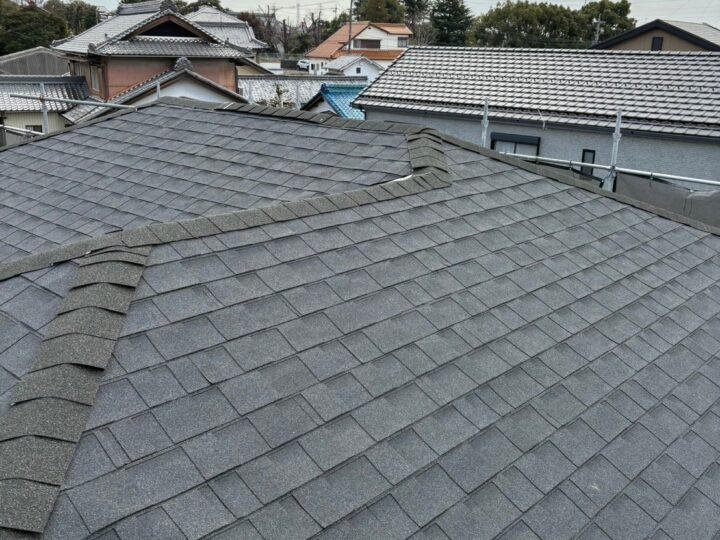 各務原市O様邸 築25年の2階建て住宅で10年前に施工した屋根塗装が剥がれてきたことを心配され、フリーダイヤルにて塗装とカバー工法の見積もり依頼をいただきました。屋根カバー工事及び外壁塗装工事✨