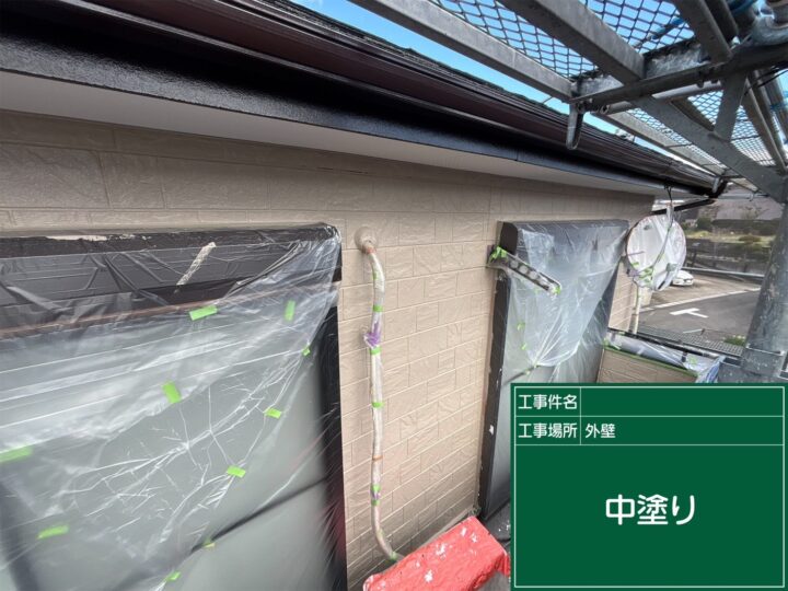 中塗りではお客様のご要望の色を塗っていきます。下塗りがしっかりとかわいてから、上塗り1回目を塗装します。この段階で凹凸等のない平らでなめらかな下地をつくっておくことで、上塗りがキレイに塗れるため、より美しく仕上げることができます。