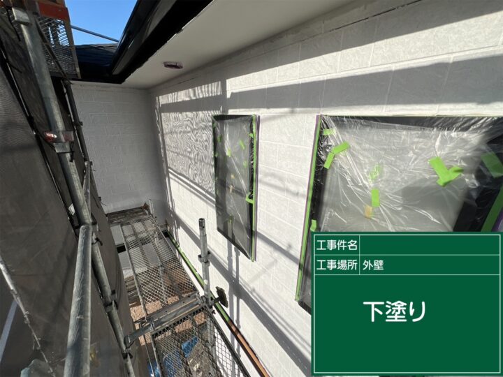 下塗りにシーラーを使用する事で上塗り塗料との密着性を高めます。
