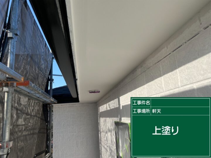 つい盲点になってしまうのが軒天の塗装です。軒天は、環境の影響によって塗膜が剥がれやすい部位です。軒天の劣化を放っておくと、軒天材一式交換になってしまう事もあります。