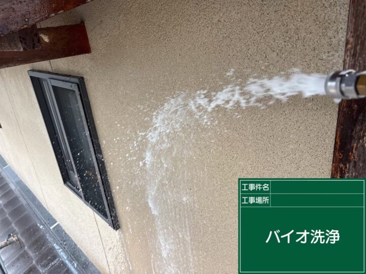 高圧洗浄で苔や藻を根こそぎ取り除くことで、塗料の持ちも良くなります。
