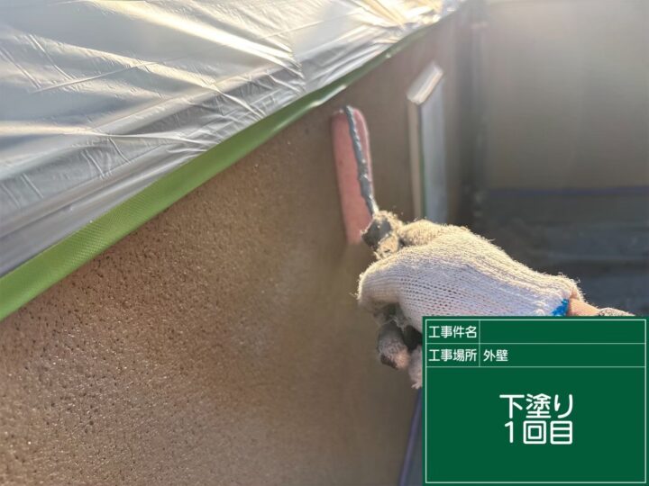 お客様のお家の外壁の素材に合った下塗り材を使用して塗装していきます。