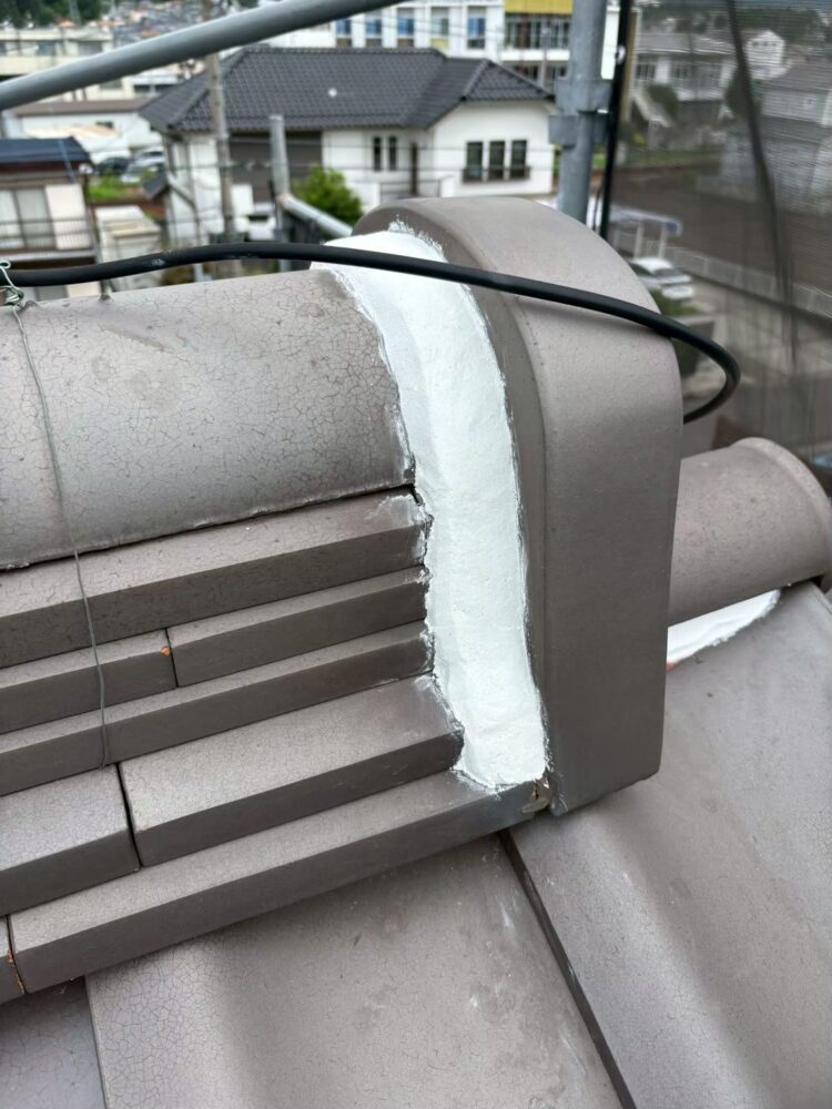 漆喰部分には、防水性と美観性を両立する材料を使用し、屋根の耐久性を向上させています。雨漏り対策としても重要な工程です。
