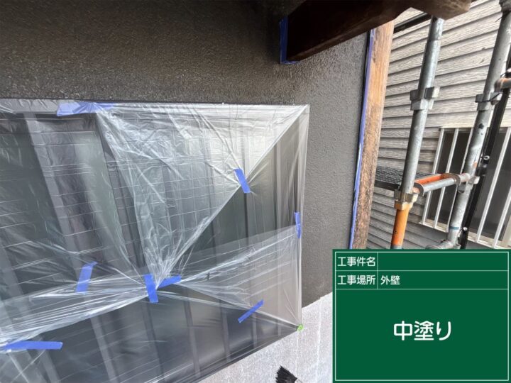 中塗りではお客様のご要望の色を塗っていきます。下塗りがしっかりとかわいてから、上塗り1回目を塗装します。この段階で凹凸等のない平らでなめらかな下地をつくっておくことで、上塗りがキレイに塗れるため、より美しく仕上げることができます。