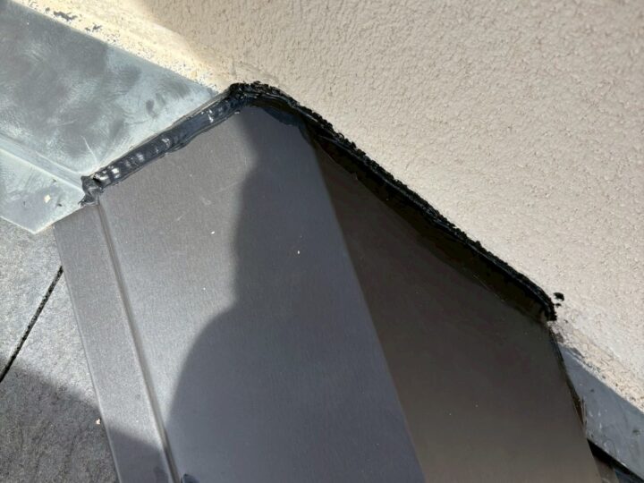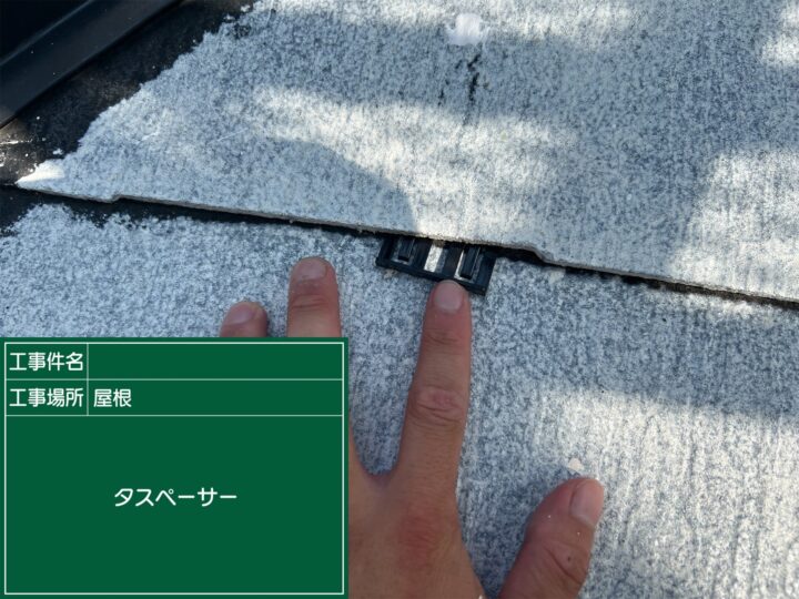適所にタスペーサーを入れ込んで隙間をつくることで屋根同士が縁切りされた状態をキープできます。縁切りすることによって屋根同士の間に雨水が溜まらなくなり、正常に流れていくので雨漏りを防ぎます。