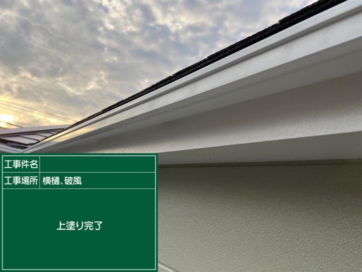 雨樋も下塗りから丁寧に下地処理をし、中塗りと上塗りとなります。雨樋が劣化してしまうと塗装で解決することができず、交換となることもあるのでメンテナンスが大切です。