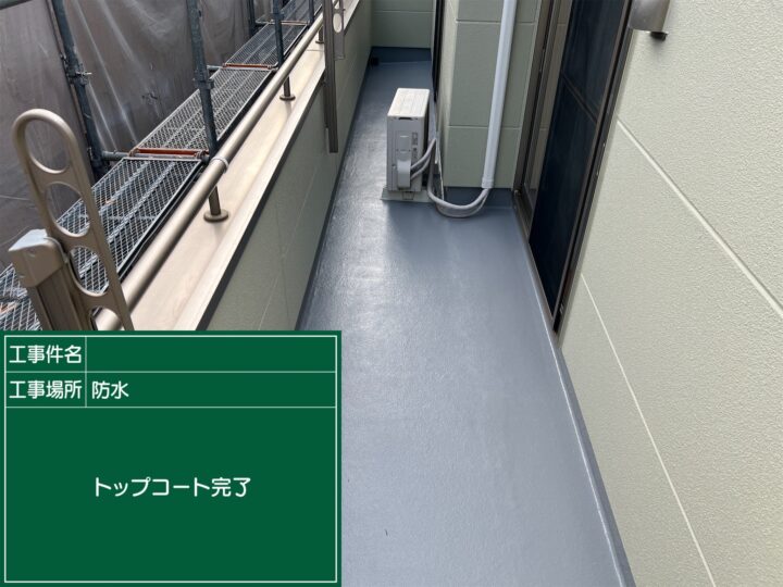 トップコート事態に防水性はない為、あくまでも防水層の保護で塗装を行います。