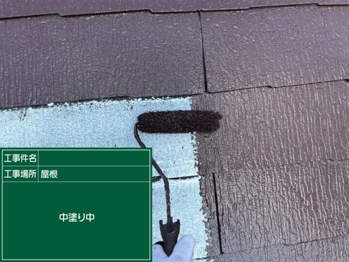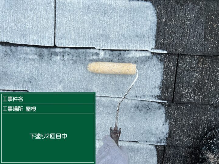 お客様のお家の屋根の素材に合った下塗り材を使用して塗装していきます。