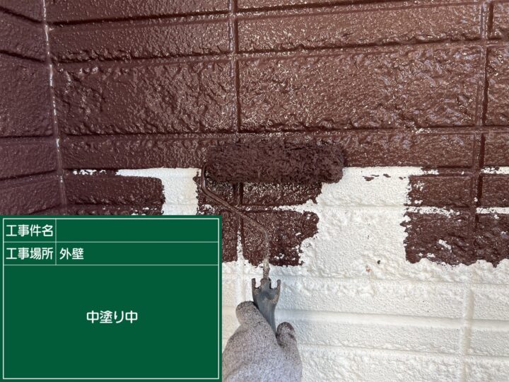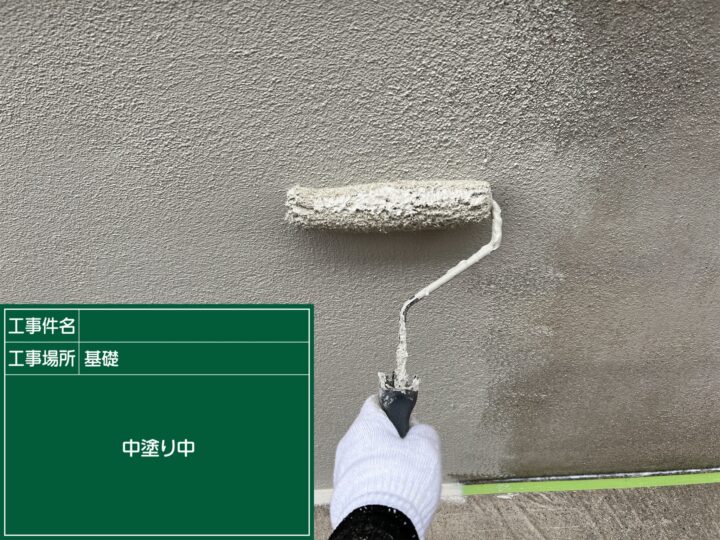 中塗りではお客様のご要望の色を塗っていきます。下塗りがしっかりとかわいてから、上塗り1回目を塗装します。この段階で凹凸等のない平らでなめらかな下地をつくっておくことで、上塗りがキレイに塗れるため、より美しく仕上げることができます。