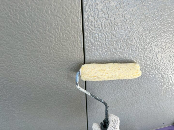 中塗りではお客様のご要望の色を塗っていきます。下塗りがしっかりとかわいてから、上塗り1回目を塗装します。この段階で凹凸等のない平らでなめらかな下地をつくっておくことで、上塗りがキレイに塗れるため、より美しく仕上げることができます。