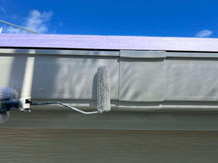 雨樋も下塗りから丁寧に下地処理をし、中塗りと上塗りとなります。雨樋が劣化してしまうと塗装で解決することができず、交換となることもあるのでメンテナンスが大切です。