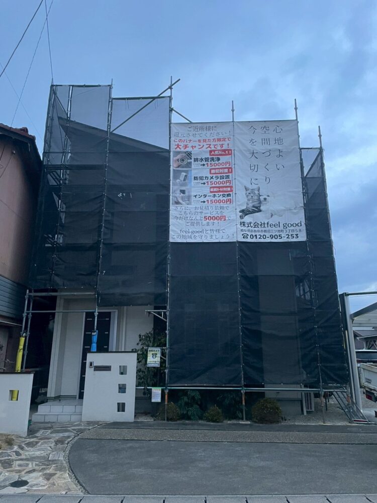 各務原市U様邸 各務原市U様邸 築10年のお住まいで排水管洗浄工事からスタートし、延長瑕疵保険申請中の外壁塗装工事が着工致しました✨