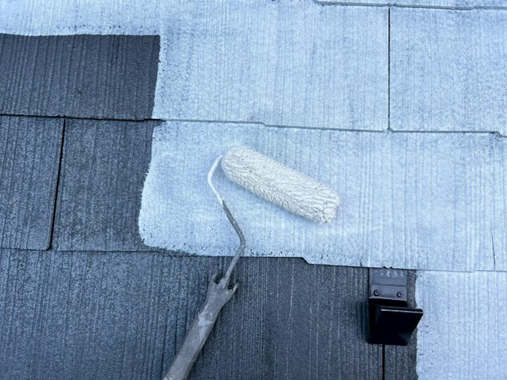 お客様のお家の屋根の素材に合った下塗り材を使用して塗装していきます。