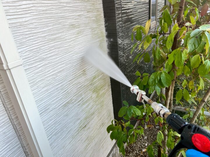 高圧洗浄で苔や藻を根こそぎ取り除くことで、塗料の持ちも良くなります。