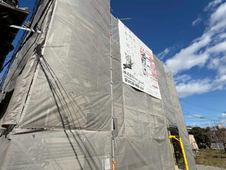 いよいよ始まる作業の開始となります。足場を組み立て、ネット養生します。足場を立てる前にご近所様へのご挨拶は弊社の方で行わせていただきます。