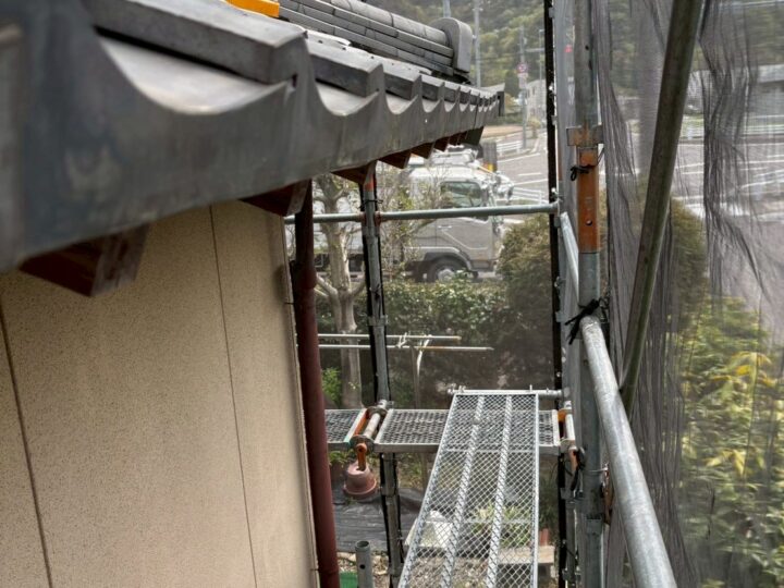 いよいよ始まる作業の開始となります。足場を組み立て、ネット養生します。足場を立てる前にご近所様へのご挨拶は弊社の方で行わせていただきます。